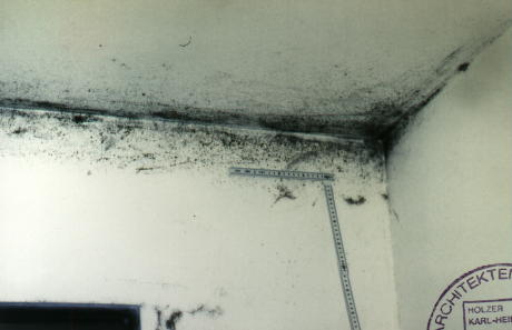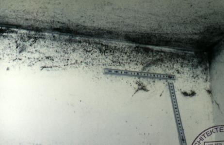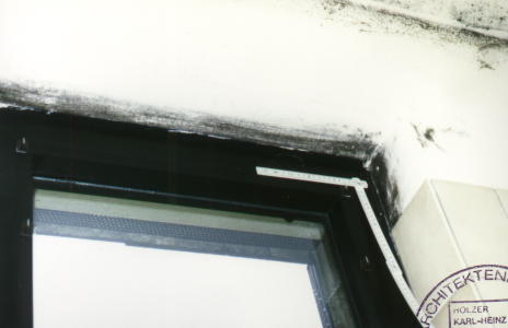 Der dargestellt Schimmelbefall befindet sich im Badezimmer einer Wohnung in einem Mehrfamilienhaus. Betroffen sind insbesondere die Übergangsbereiche Wand an Decke sowie die Fensterleibungen und der Sturz. Die Aussenwand ist deutlich stärker von Schimmel befallen als die Innenwände. Im wesentlichen war der Schimmelbefall auf magelhaftes (unzureichendes) Lüftungsverhalten zurückzuführen.